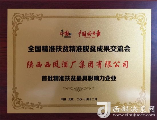 西鳳集團(tuán)公司榮獲全國“首批精準(zhǔn)扶貧最具影響力企業(yè)”榮譽(yù)稱號(hào)