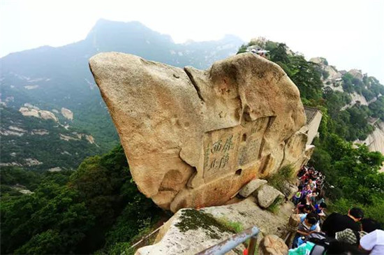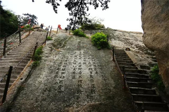 華山系一塊完整碩大的花崗巖體構(gòu)成,歷史衍化可追溯至27億年.“太華之山,削成而四方,其高五千仞,其廣十里。”華山之險(xiǎn)居五岳之首,登山之路蜿蜒曲折,長(zhǎng)達(dá)12公里,到處都是懸崖絕壁,有“自古華山一條道”的說法。