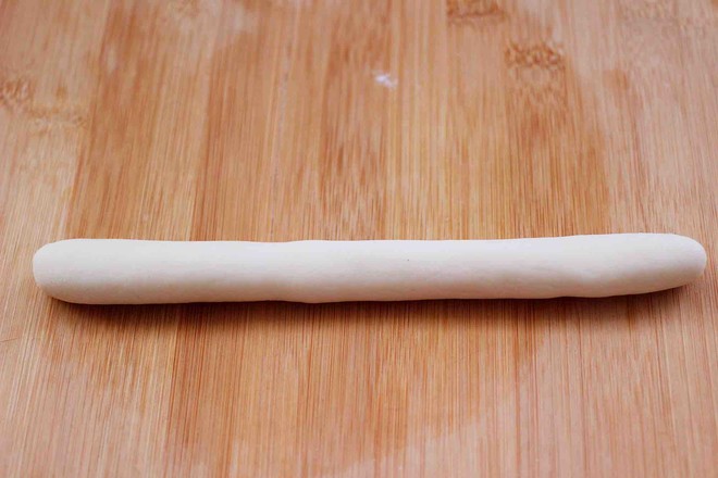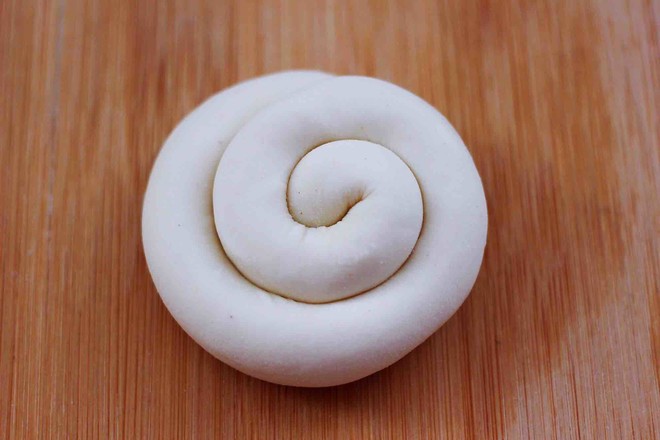 12.然后把長條從一頭開始卷起,卷到最后把尾端壓在面團(tuán)底下。