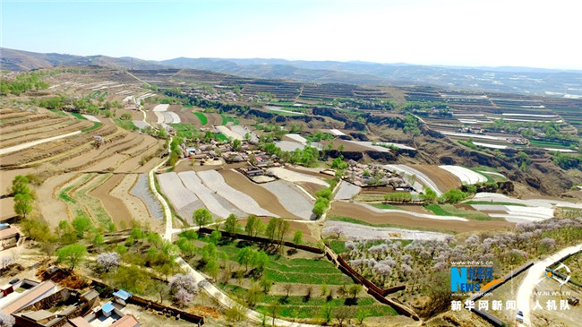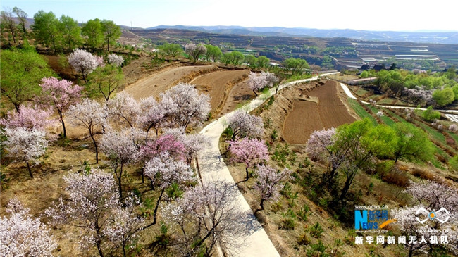 原標題:【飛“閱”中國】甘肅定西:黃土塬上別樣景 千樹杏花笑春風