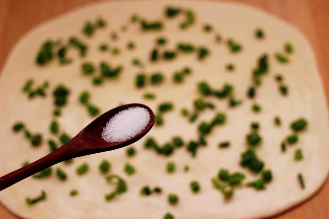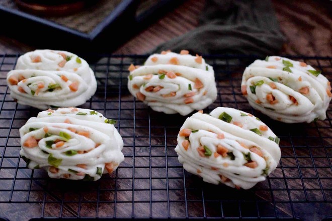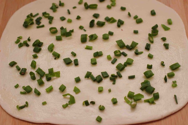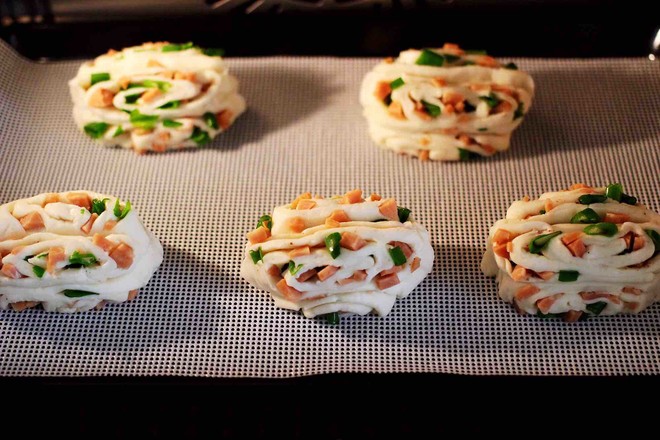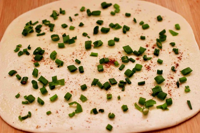 主料:中筋面粉200克 小香蔥3顆 火腿腸1根 酵母2.5克 鹽1克 花椒粉2克 花生油5克