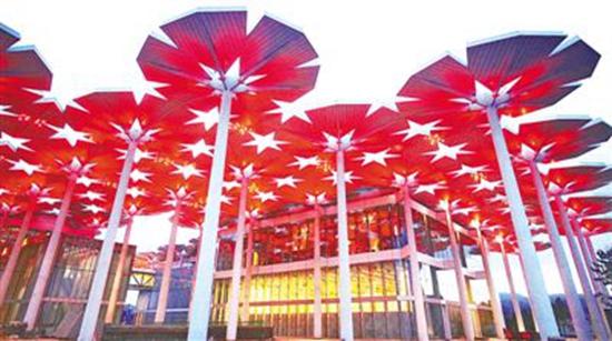 由94把巨大鋼“花傘”構(gòu)成的國際館,宛如一片絢爛的“花海”。人民日報(bào)記者賀勇攝