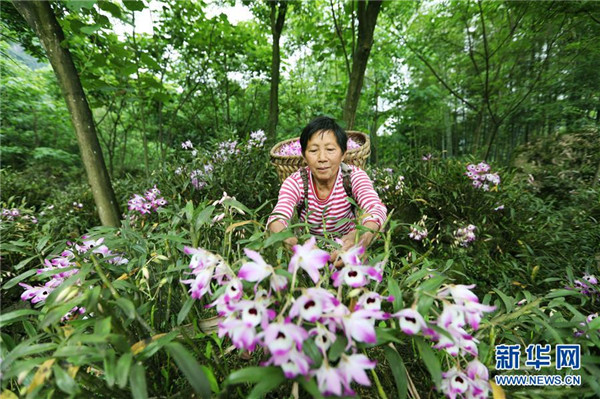 近日,貴州省赤水市的金釵石斛花陸續(xù)進(jìn)入盛花期,當(dāng)?shù)剞r(nóng)民忙著采摘鮮花,供應(yīng)各地市場(chǎng)。金釵石斛是一種名貴中藥材,有“仙草”之稱。近年來(lái),赤水市多個(gè)鄉(xiāng)鎮(zhèn)積極推進(jìn)農(nóng)業(yè)與鄉(xiāng)村旅游等產(chǎn)業(yè)融合,采取“合作社+支部+農(nóng)戶”模式,鼓勵(lì)農(nóng)民種植金釵石斛,助力脫貧攻堅(jiān)和鄉(xiāng)村振興。新華社發(fā)(王長(zhǎng)育 攝)