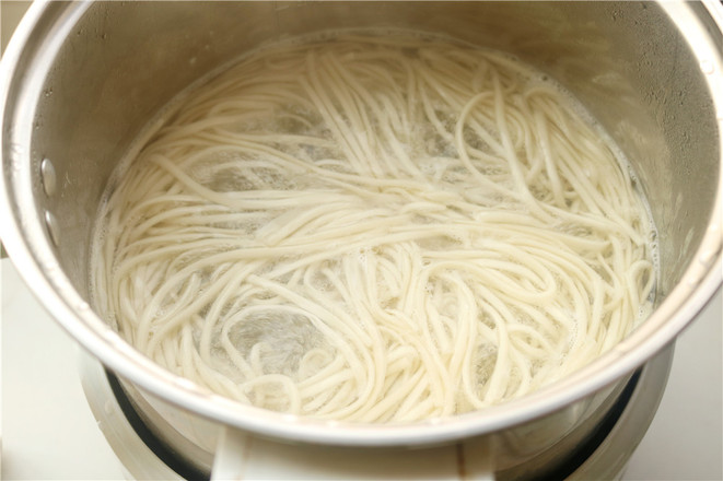 5.煮好的掛面撈出來(lái)過(guò)一下涼開水,這樣拌起來(lái)更清爽。