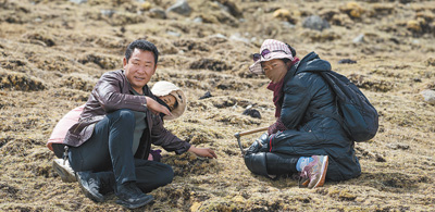 發(fā)現(xiàn)蟲(chóng)草后,拉姆用鋤頭小心地翻起一塊草皮,拔出了一根蟲(chóng)草。 |