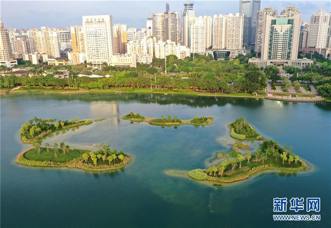 廣西南寧市從2017年底啟動南湖水質改善項目。經過一年多的建設,已形成水面人工島花香四溢、水下水草依依的生態(tài)凈化系統(tǒng)。加之步道、涼亭、長廊等配套工程的建設,南湖成為廣大市民休閑觀光和鍛煉的重要場所。 新華社記者 周華 攝
