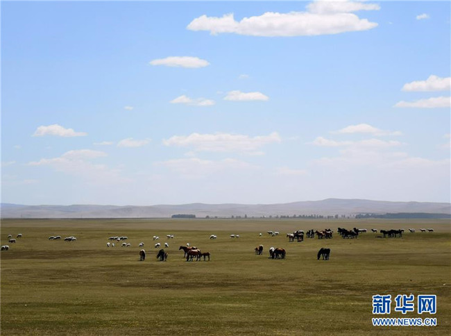 5月22日,成群的馬和羊在內(nèi)蒙古呼倫貝爾市新巴爾虎左旗境內(nèi)的草原上吃草(手機(jī)拍攝)。近期,隨著降雨量增多、氣溫回暖,內(nèi)蒙古草原陸續(xù)進(jìn)入返青期。新華社記者殷耀攝