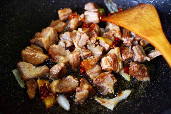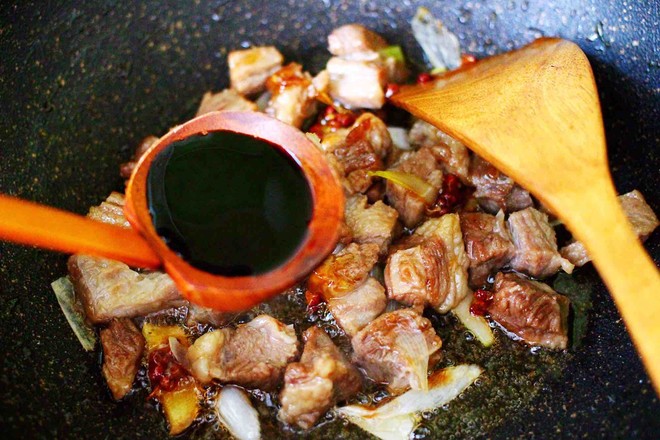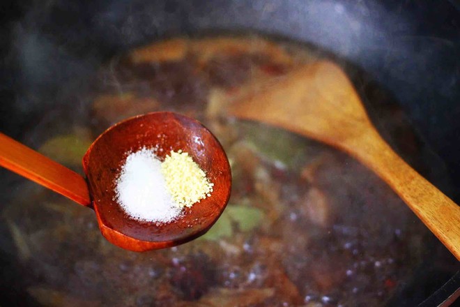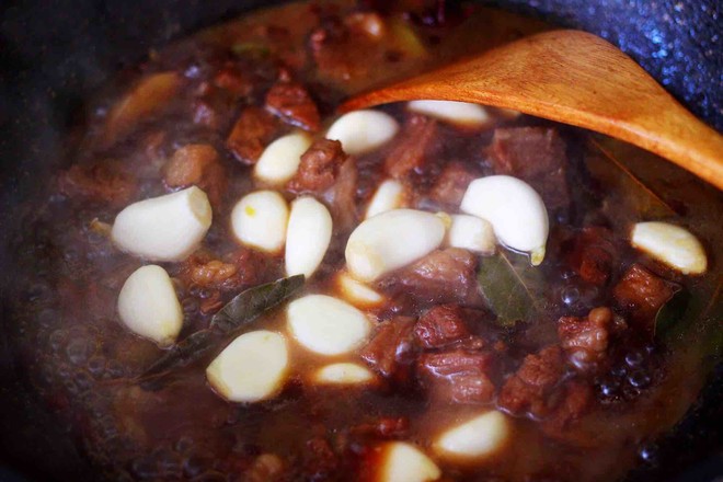 17.小火繼續(xù)燉煮至牛肉和大蒜變得軟糯的時候。