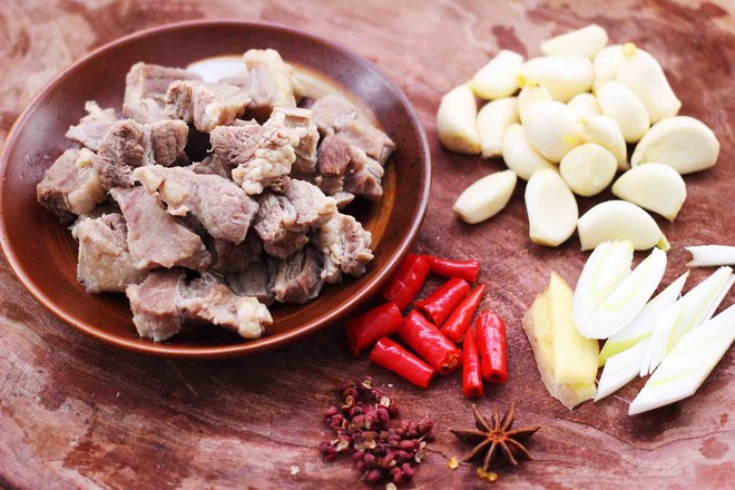 主料:牛肉600克 大蒜3頭 小米辣3個