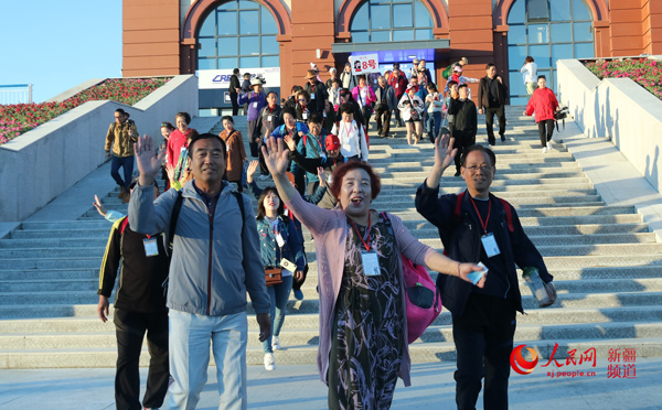 首趟遼寧援疆旅游專列抵達(dá)塔城市,送來了克塔鐵路第一批旅客。文博 攝