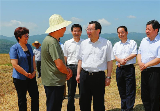 6月13日,省委書記胡和平在千陽縣城關(guān)鎮(zhèn)新民村了解夏收和強農(nóng)惠農(nóng)政策落實情況。 記者 宋紅梅攝