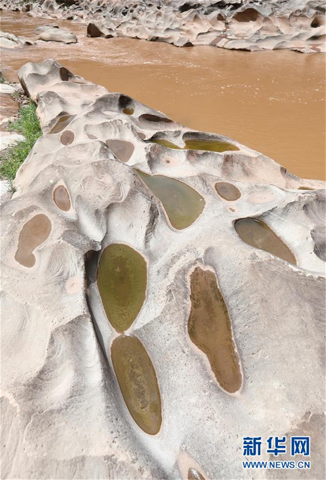 這是6月16日拍攝的四川省會東縣鲹魚河鐵柳鎮(zhèn)火石村段的壺穴地貌。
