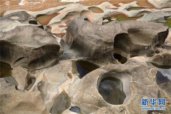 這是6月16日拍攝的四川省會東縣鲹魚河鐵柳鎮(zhèn)火石村段的壺穴地貌。新華社記者江宏景攝