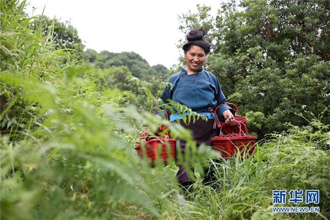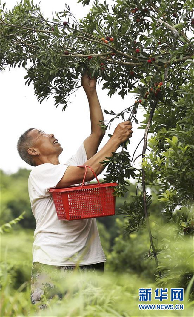 6月15日,在丹寨縣揚武鎮(zhèn)老冬村楊梅種植園,果農在采摘楊梅。新華社發(fā)(黃曉海 攝)