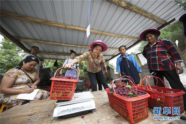 6月15日,在丹寨縣揚武鎮(zhèn)老冬村楊梅種植園,果農在給采摘好的楊梅稱重。新華社發(fā)(黃曉海 攝)