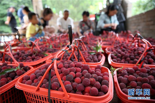 6月15日,在丹寨縣揚武鎮(zhèn)老冬村楊梅種植園,果農在整理準備出售的楊梅。新華社發(fā)(黃曉海 攝)