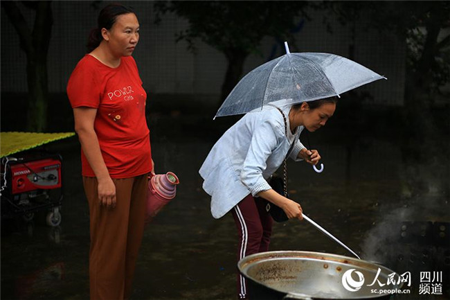 6月19日,宜賓長寧地震后的第二個清晨,安置點群眾領(lǐng)取了免費的早餐。(人民網(wǎng) 朱虹 攝)