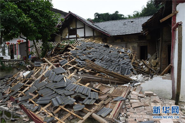 6月18日在長寧縣雙河鎮(zhèn)拍攝的垮塌的房屋。新華社記者 陳地 攝