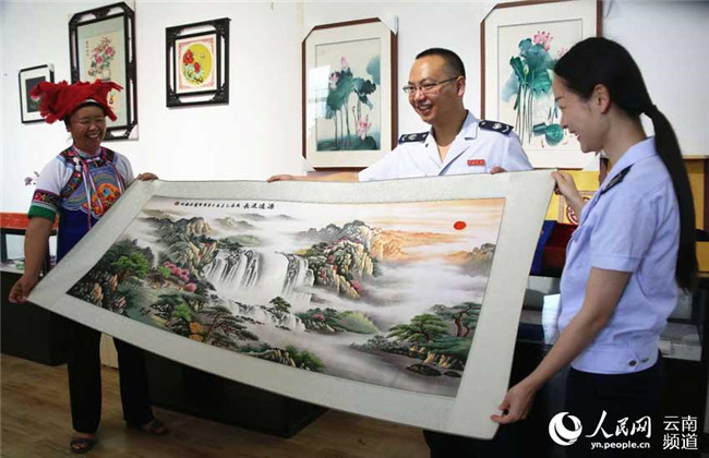 沉下心來學(xué)習(xí)刺繡的王陸芬朝著自己的小目標(biāo)努力。白天,她向村里的老人們學(xué)習(xí)刺繡技法,學(xué)習(xí)構(gòu)圖、畫圖,晚上就在家里刻苦練習(xí)。一有機(jī)會(huì),王陸芬就出去考察學(xué)習(xí)。“有一年去上??疾?,看到他們的刺繡還沒有我做的精細(xì),沒想到價(jià)格還很貴。”這讓王陸芬堅(jiān)定了自己的想法,在王陸芬的帶動(dòng)下,白沙坡村成立了刺繡協(xié)會(huì),協(xié)會(huì)一開始只有26人。2014年2月,技藝日臻成熟的王陸芬成立了“紙藝刺繡農(nóng)民專業(yè)合作社”,2015年成立硯山縣華韻手工刺繡有限公司。