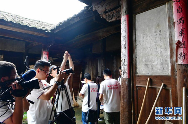 6月17日,在長汀縣南山鎮(zhèn)中復(fù)村的觀壽公祠,媒體記者在重溫當(dāng)年紅軍長征前的場景。 新華社記者魏培全攝