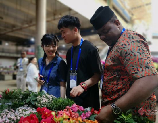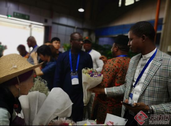 昆明“一枝花”吸引非洲友人聞香又識花