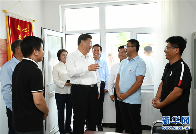 7月15日至16日,中共中央總書記、國家主席、中央軍委主席習(xí)近平在內(nèi)蒙古考察并指導(dǎo)開展“不忘初心、牢記使命”主題教育。這是15日下午,習(xí)近平在赤峰市喀喇沁旗河南街道馬鞍山村黨群服務(wù)中心了解基層黨建、民族團結(jié)和鄉(xiāng)村振興情況。 新華社記者 謝環(huán)馳 攝