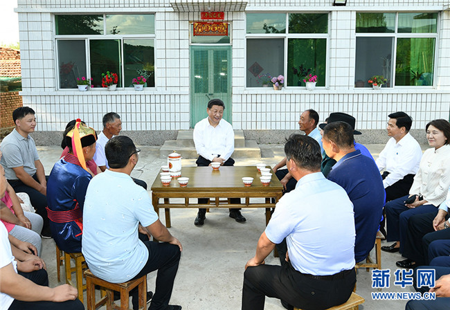 7月15日至16日,中共中央總書記、國家主席、中央軍委主席習(xí)近平在內(nèi)蒙古考察并指導(dǎo)開展“不忘初心、牢記使命”主題教育。這是15日下午,習(xí)近平在赤峰市喀喇沁旗河南街道馬鞍山村村民張國利家,同基層干部群眾代表親切交流。 新華社記者 謝環(huán)馳 攝