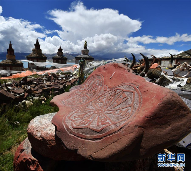 當惹雍錯旁的象雄佛塔及經(jīng)石(8月5日攝)。西藏那曲市尼瑪縣位于西藏西北部,位于羌塘國家級自然保護區(qū)內(nèi),是古老象雄文明的發(fā)祥地之一。這里空氣潔凈,野生動物繁多,深受游客喜愛。新華社記者覺果攝