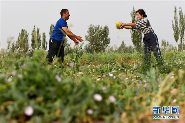 8月11日,在新疆伽師縣,瓜農在采摘伽師瓜。新華社記者 丁磊 攝