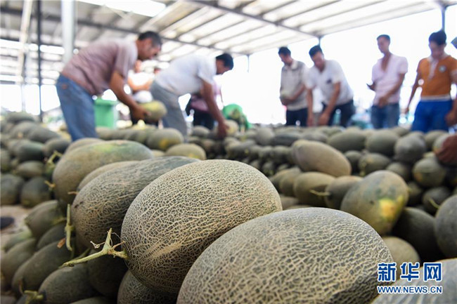 在新疆果品(伽師)批發(fā)交易市場,客商在挑選伽師瓜(8月10日攝)。新華社記者 丁磊 攝