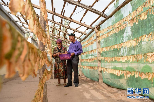 8月11日,在新疆伽師縣,瓜農在晾曬伽師瓜干。新華社記者 丁磊 攝