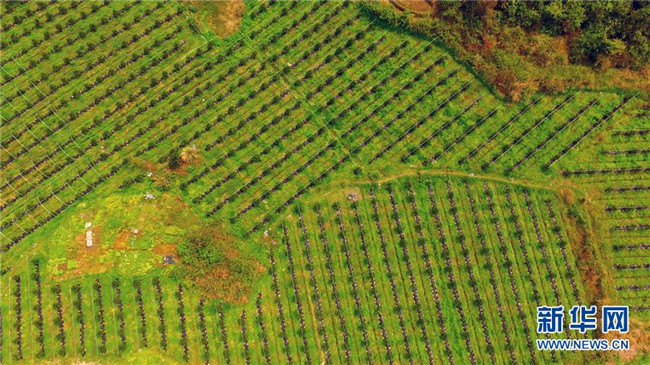 這是廣西融安縣大良鎮(zhèn)古蘭村古蘭屯金桔種植基地(3月21日無人機(jī)拍攝)。 新華社記者 黃孝邦 攝