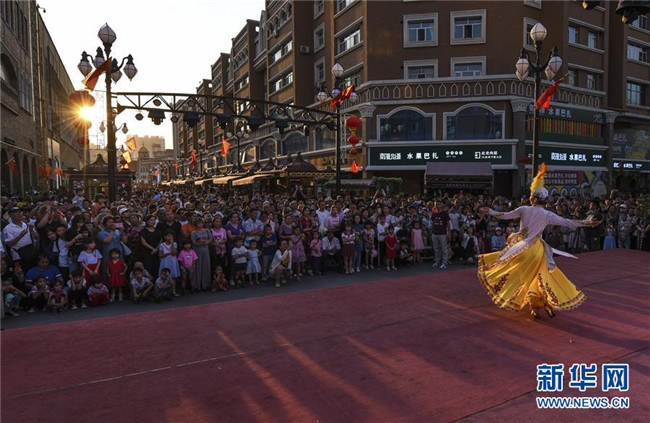 人聲鼎沸的大巴扎景區(qū),歡快的歌舞,豐富的美食,每天吸引著10余萬(wàn)海內(nèi)外游客匯聚于此。夜愈深,霓虹愈璀璨,映照著一張張笑臉。