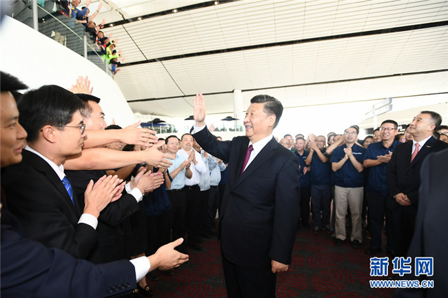 投運(yùn)儀式結(jié)束后,習(xí)近平來到機(jī)場國際出發(fā)大廳,看望參與機(jī)場建設(shè)和運(yùn)營的工作人員代表。習(xí)近平同大家一一握手,代表黨中央向大家并向所有參與機(jī)場規(guī)劃、建設(shè)、運(yùn)營的同志們表示熱烈的祝賀和節(jié)日的問候。習(xí)近平指出,大興國際機(jī)場建設(shè)標(biāo)準(zhǔn)高、建設(shè)工期緊、施工難度大,全體建設(shè)者辛勤勞動、共同努力,高質(zhì)量地完成了任務(wù),把大興國際機(jī)場打造成為精品工程、樣板工程、平安工程、廉潔工程,向黨和人民交上了一份令人滿意的答卷!