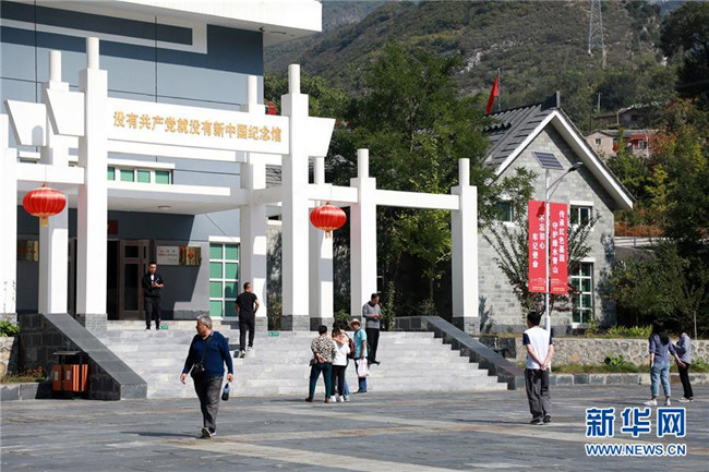 10月3日,在北京市房山區(qū)霞云嶺鄉(xiāng)堂上村,游客參觀沒(méi)有共產(chǎn)黨就沒(méi)有新中國(guó)紀(jì)念館。新華社記者王君璐攝
