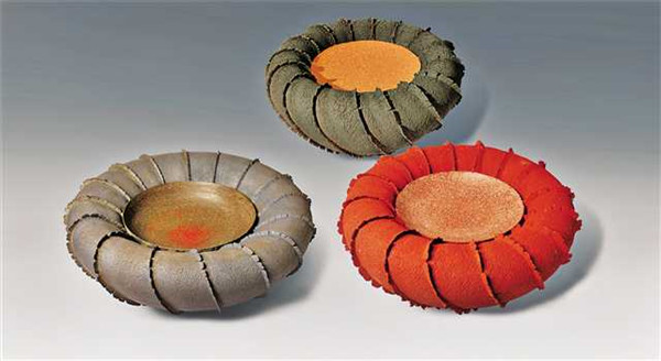 《器之欲》由3個獨立的圓形器皿構(gòu)成,器皿顏色分別為灰藍(lán)色、黑色和朱紅色,傳達(dá)出質(zhì)樸而敦厚的美感。