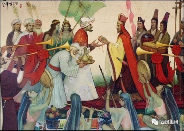 酒除了是國(guó)家祭祀必不可少的重要部分外,也在商業(yè)賦稅和人們情感交流中承擔(dān)著重要地位。陜西西安(古長(zhǎng)安)是古絲綢之路的起點(diǎn),鳳翔是古絲綢之路的重要驛站,西鳳酒自漢代以來(lái)就作為饋贈(zèng)友邦、域外交流的國(guó)禮。史書(shū)記載,唐儀鳳(公元676年)年間的一個(gè)陽(yáng)春三月,吏部侍郎裴行儉護(hù)送波斯王子泥涅師回國(guó)途中,行至鳳翔縣城以西的亭子頭村附近,發(fā)現(xiàn)柳林鎮(zhèn)窖藏陳酒香氣將五里地外亭子頭的蜜蜂蝴蝶醉倒的奇景,即興吟詩(shī)贊嘆曰:“送客亭子頭,蜂醉蝶不舞;三陽(yáng)開(kāi)國(guó)泰,美哉柳林酒”,并以此詩(shī)贈(zèng)送王子。