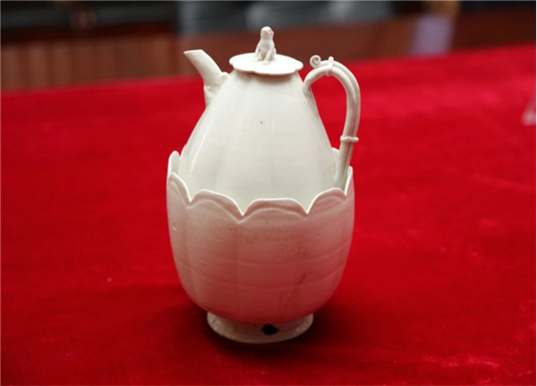 本次發(fā)現(xiàn)最具特色文物當(dāng)屬宋代官窯白瓷——白釉獅鈕瓜棱形帶花口溫碗執(zhí)壺。該款文物造型精美、器型罕見(jiàn),國(guó)內(nèi)尚未發(fā)現(xiàn)同款,具有特別重要的歷史藝術(shù)和科學(xué)文化價(jià)值。經(jīng)陜西省文物鑒定中心鑒定:該文物屬?lài)?guó)家一級(jí),通高22.5厘米,壺口徑5厘米,底徑6.5厘米,溫碗口徑14厘米,底徑8.5厘米。該文物由蹲獅型鈕壺蓋、瓜棱形執(zhí)壺、帶鏤空足瓜腹形花口溫缽等三部分組成。從與該一級(jí)文物同時(shí)出土的慕志銘得知,該墓葬主人為宋代眉縣斜谷鎮(zhèn)下將張侍郎(相關(guān)于現(xiàn)今的鄉(xiāng)鎮(zhèn)教育專(zhuān)干)之父母(為合葬墓)。