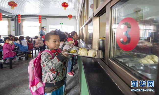自實(shí)施農(nóng)村義務(wù)教育學(xué)生營養(yǎng)改善計(jì)劃以來,寧夏回族自治區(qū)積極為農(nóng)村學(xué)子提供免費(fèi)的營養(yǎng)餐。從去年開始,寧夏固原市西吉縣的免費(fèi)營養(yǎng)午餐迎來了升級換代,從原來的一道燴菜變成了如今的兩素一葷,餐具由餐桶換成了餐盤。在保證營養(yǎng)膳食搭配的同時,增加了學(xué)生的自主選擇性。從“吃得飽”到“吃得好”,升級換代的營養(yǎng)餐得到了廣大學(xué)生認(rèn)可。 新華社發(fā)(楊植森 攝)