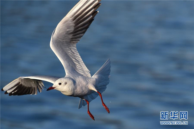 11月17日,一只紅嘴鷗在滇池上空飛翔。 新華社記者 李芒茫 攝