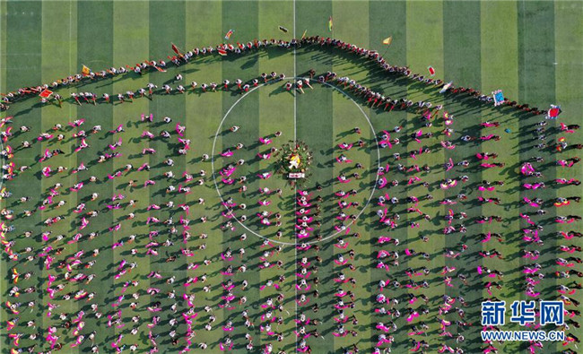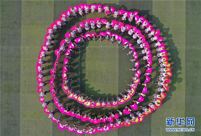 11月23日,當(dāng)?shù)厝罕娫谔J笙斗馬節(jié)開幕式上表演民族歌舞(無(wú)人機(jī)拍攝)。