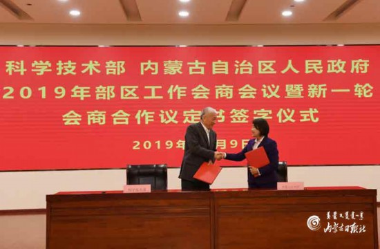 會上,王志剛、布小林代表雙方簽署工作會商制度議定書(2019—2024年)。雙方?jīng)Q定建立新一輪會商機制,成立部區(qū)合作委員會,在構(gòu)建經(jīng)濟高質(zhì)量發(fā)展的產(chǎn)業(yè)創(chuàng)新體系、推動呼包鄂創(chuàng)建國家自主創(chuàng)新示范區(qū)、提升以原始創(chuàng)新和產(chǎn)業(yè)技術(shù)創(chuàng)新為重點的科技支撐能力、探索生態(tài)文明建設(shè)新路子、建立“科技興蒙”新機制等方面加強會商,加快推動創(chuàng)新型內(nèi)蒙古建設(shè)。