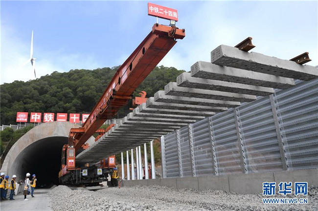 12月22日,中鐵二十四局工作人員在平潭海峽公鐵大橋鋪軌施工現(xiàn)場進(jìn)行鋪軌作業(yè)。新華社記者 林善傳 攝