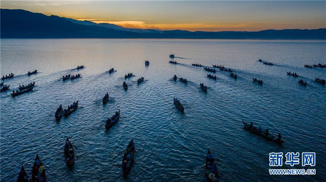 當(dāng)日,位于云南省玉溪市江川區(qū)的星云湖迎來一年一度的開湖捕魚季,600余艘漁船駛?cè)胄窃坪稉啤?星云湖是云南省九大高原湖泊之一,本次開湖捕魚時(shí)間將從2019年12月25日持續(xù)至2020年1月23日。 新華社記者 胡超 攝