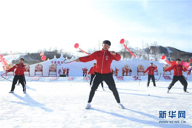 12月26日,表演者在啟動儀式上表演。當日,寧夏固原首屆冰雪文化旅游節(jié)在涇源縣婭豪國際滑雪場開幕。本屆冰雪文化旅游節(jié)以“相約六盤山·歡樂冬季游”為主題,將冰雪資源、文化旅游和體育賽事相結合,吸引游客參觀游玩。新華社記者賈浩成攝