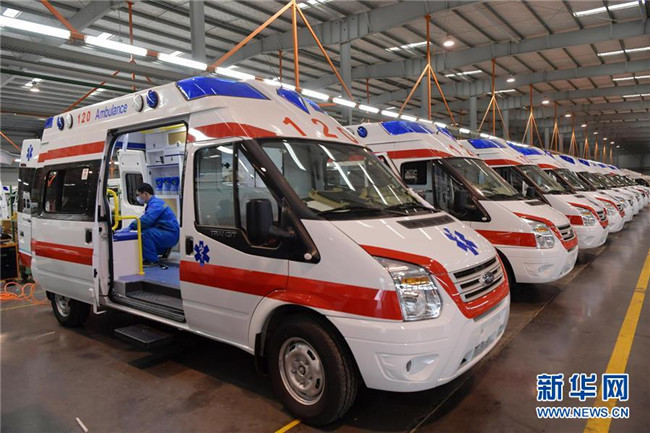 在江西江鈴汽車(chē)集團(tuán)改裝車(chē)股份有限公司負(fù)壓救護(hù)車(chē)生產(chǎn)基地內(nèi),工作人員在負(fù)壓救護(hù)車(chē)生產(chǎn)線上進(jìn)行裝配調(diào)試(2月6日攝)。 新華社記者 彭昭之 攝