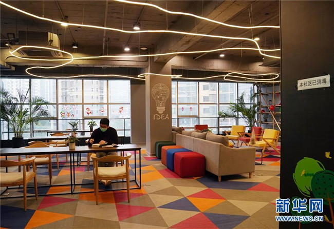 2月11日,一名白領(lǐng)在上海市靜安區(qū)的眾創(chuàng)辦公空間“印廂里”的公共休息區(qū)休憩。樓內(nèi)多數(shù)租戶(hù)和人員選擇在家辦公或輪流到崗。 新華社記者 劉穎 攝