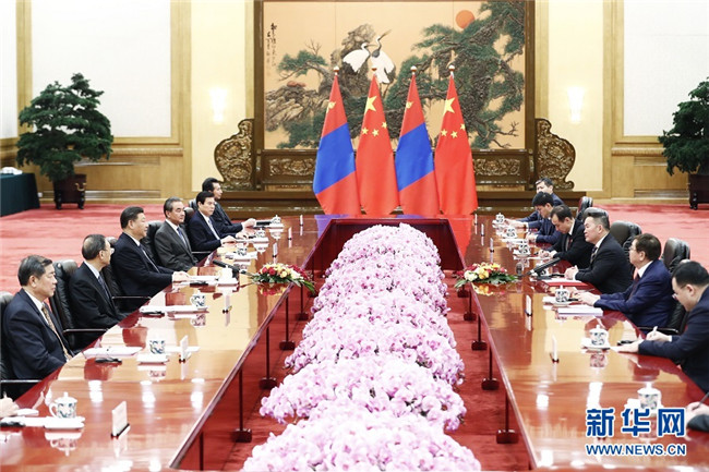 習(xí)近平指出,中蒙是山水相連的友好鄰邦。中方高度重視發(fā)展中蒙關(guān)系,始終將蒙古國(guó)作為中國(guó)周邊外交的重要方向。中方愿同蒙方一道,鞏固政治互信,加強(qiáng)共建“一帶一路”合作,共同推動(dòng)構(gòu)建命運(yùn)共同體,更好造福兩國(guó)人民,為地區(qū)和平穩(wěn)定發(fā)展作出貢獻(xiàn)。