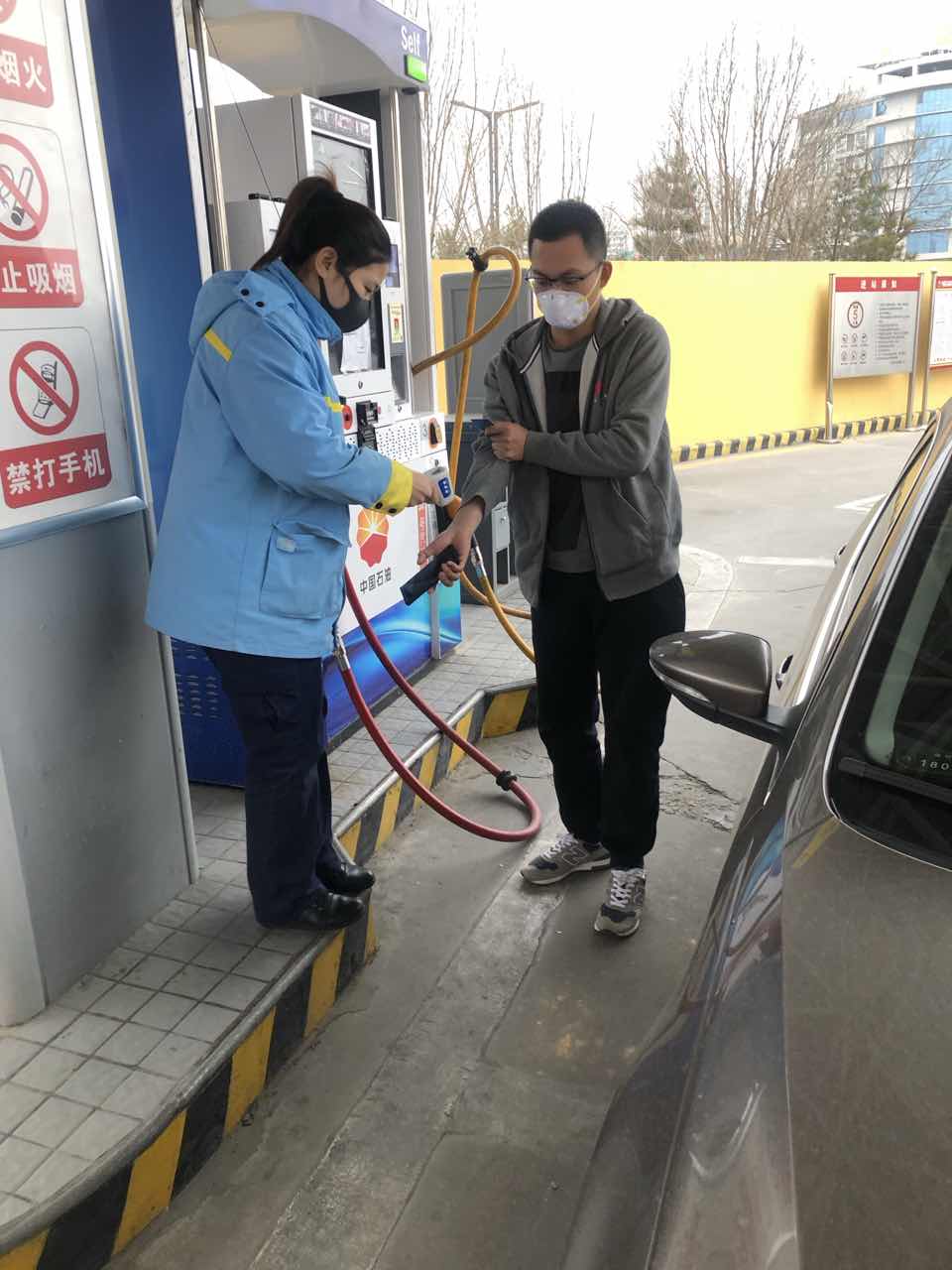 區(qū)域所轄加油站,站站有黨員,為保障員工安全健康,各黨員發(fā)揮模范先鋒崗作用,帶動員工一起抗擊疫情。在收銀臺設(shè)置一米安全警戒線;加強(qiáng)防控物資管控,保證防護(hù)口罩、消毒水、手套等物品充足;班組優(yōu)化,確保正常營業(yè);尋找地方政府辦理疫情期間車輛通行證,保證油品供應(yīng);組織員工學(xué)習(xí)“34566”疫情防護(hù)措施,提升員工自我防護(hù)意識;制定應(yīng)急預(yù)案,建立站、組、人三級防控工作責(zé)任網(wǎng)格化體系,讓全體員工深刻認(rèn)識到新型冠狀病毒疫情防控工作的重要性和緊迫性,并及時通過各種渠道告知顧客。