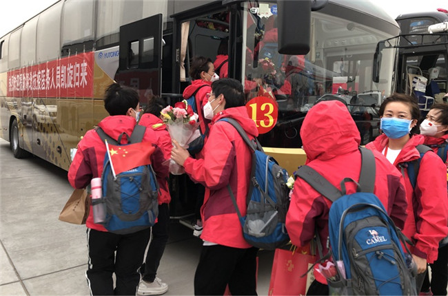 今天下午,載有寧夏第五批、第六批援湖北醫(yī)療隊(duì)隊(duì)員的包機(jī)降落在銀川河?xùn)|國際機(jī)場。今日撤離隊(duì)伍共有323人返回,其中320人乘機(jī)返回,3人駕駛緊急救援車返回?;貙幒?,各醫(yī)療隊(duì)醫(yī)務(wù)人員將分別由五市接回,在指定酒店接受14天醫(yī)學(xué)隔離。據(jù)了解,疫情以來,寧夏陸續(xù)派出六批援湖北醫(yī)療隊(duì)隊(duì)員共計(jì)785人,目前仍有8名疾控中心流調(diào)人員繼續(xù)在武漢、潛江支援。